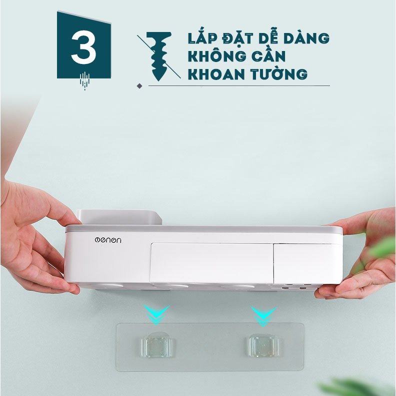 • Cố định trên tường bằng miếng dán cường lực, không cần khoan thủng tường