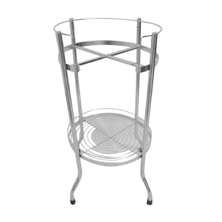 Kệ bằng inox dạng tròn, 4 chân, cao 66 cm, đường kính 28 cm, dùng để bình nước uống tinh khiết 20 lít, có 1 tầng làm khay để ly tách.