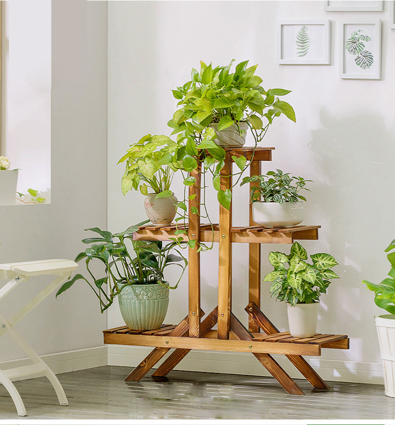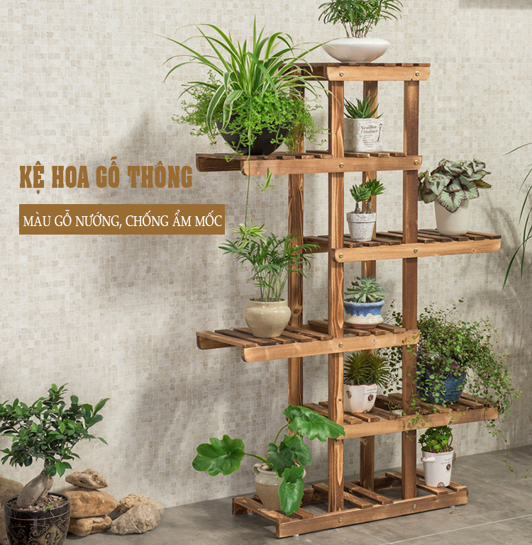 Kệ để chậu hoa cây cảnh đa tầng để trong nhà ngoài trời sân vườn ban công gỗ thông thương hiệu MuMaRen nhập khẩu