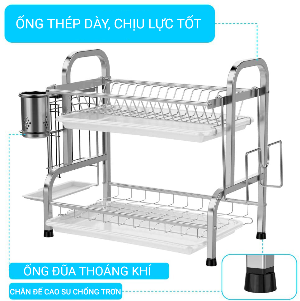 Kệ Úp Chén Bát Đĩa INOX 304 Kèm Khay Hứng Nước Giá Khô Ráo Trên Bàn Bếp