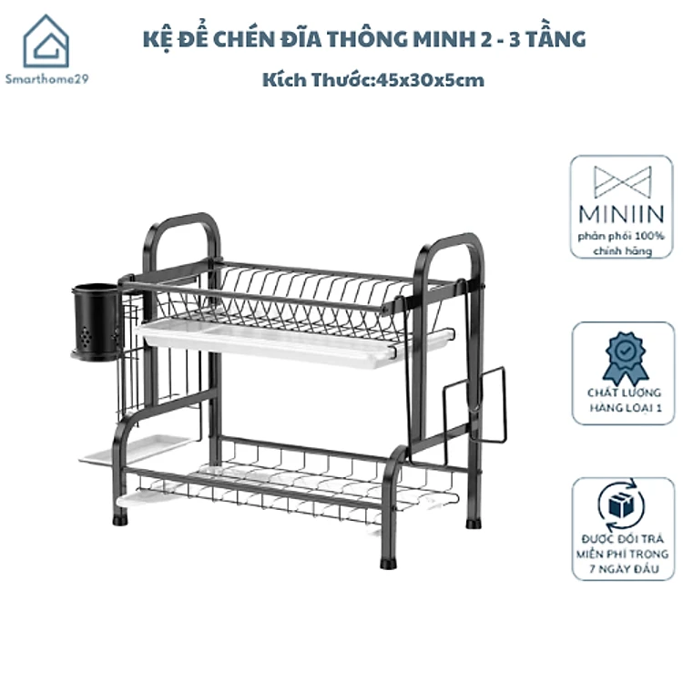 Kệ Để Chén Đĩa Thông Minh 2 Tầng và 3 Tầng Trên Bồn Rửa Bát Sơn Đen Tĩnh Điện Cao Cấp Chống Han Gỉ - HÀNG CHÍNH HÃNG MINIIN