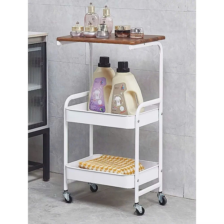 Kệ Để Đồ 3 Tầng Có Bánh Xe – Kệ Spa Mặt Gỗ, Khung Sắt Sơn Tĩnh Điện – Kệ Đẩy Đa Năng Cho Nhà Bếp, Phòng Khách, Phòng Ngủ- HÀNG CHÍNH HÃNG MINIIN