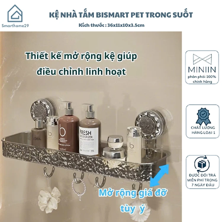 Kệ Để Đồ Phòng Tắm Cốc Hút Chắc Chắn, Chất Liệu PET, Móc Treo Tiện Lợi - HÀNG CHÍNH HÃNG MINIIN