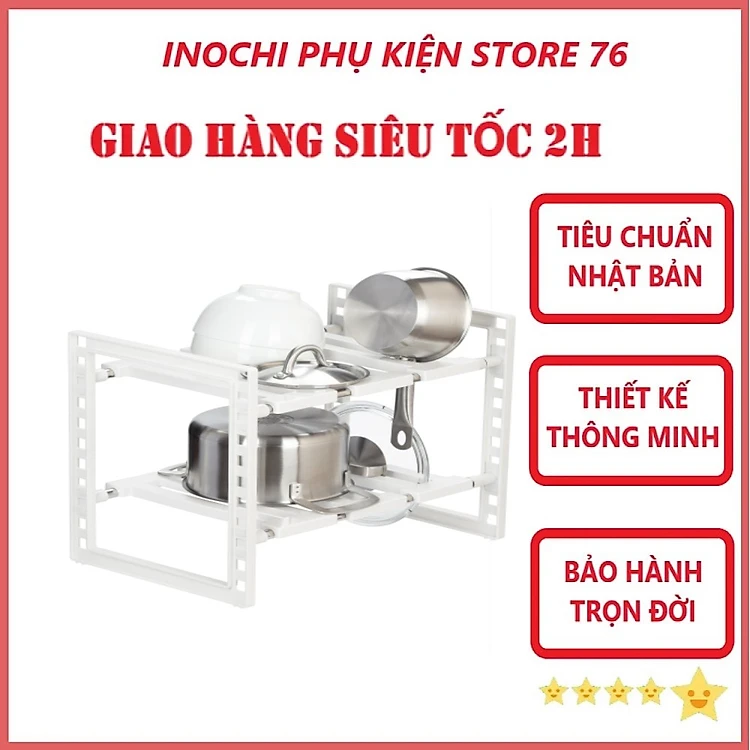 Kệ Để Gầm Bếp Tokyo, Kệ Để Đồ Tiện Dụng Điều Chỉnh Được Độ Dài , Sản Xuất Theo Tiêu Chuẩn Nhật Bản Bền Đẹp - Tặng kèm khăn lau PaKaSa
