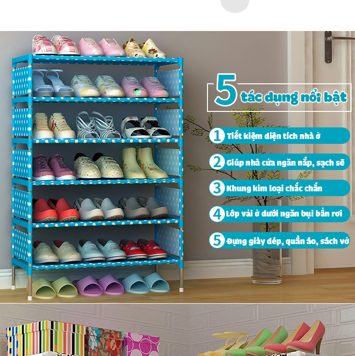 Cuộc sống ngày càng bận rộn, đồ đạc trong gia đình cũng ngày một nhiều. Sau một ngày làm việc mệt mỏi, bạn không hề muốn nhìn đống giày dép ngổn ngang trước cửa, hay mở cửa phòng ra là thấy đống quần áo rơi đầy trên giường, dưới đất. Với Kệ để giày dép quần áo khung kim loại 6 tầng họa tiết hình hoa HB-6R nhập khẩu bởi Gia dụng  bạn có thể sắp xếp đồ dùng một cách vô cùng gọn gàng, ngăn nắp. Kệ để giày dép quần áo khung kim loại 6 tầng họa tiết hình hoa HB-6R với lớp khung kim loại chắc chắn, cứng cáp và lớp vải hoa phủ bên ngoài sẽ giúp giày dép, đồ dùng gia đình bạn được sắp xếp gọn gàng, cho căn nhà thêm rộng rãi và sạch sẽ