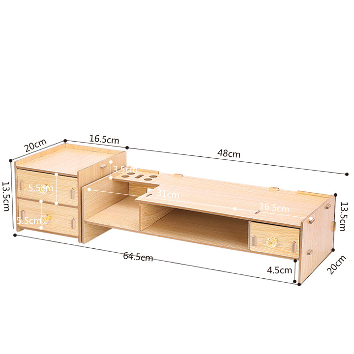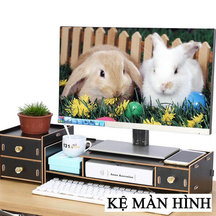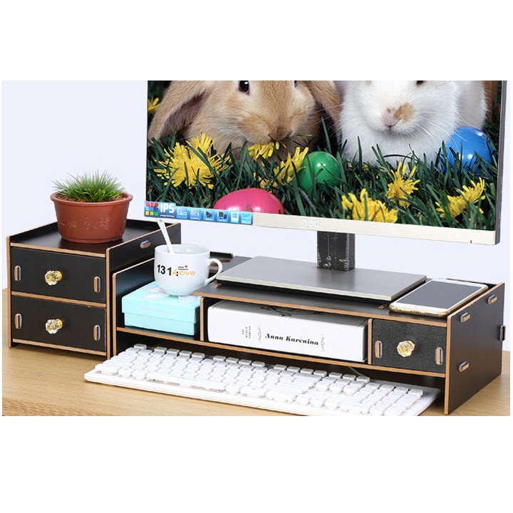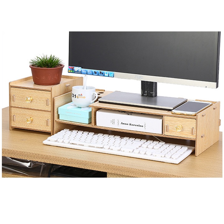 Kệ để màn hình máy tính này giúp bạn ngồi làm việc ở tư thế thoải mái hơn. Các ngăn tủ để đồ được gọn gàng. Có thể lau chùi thoải mái .