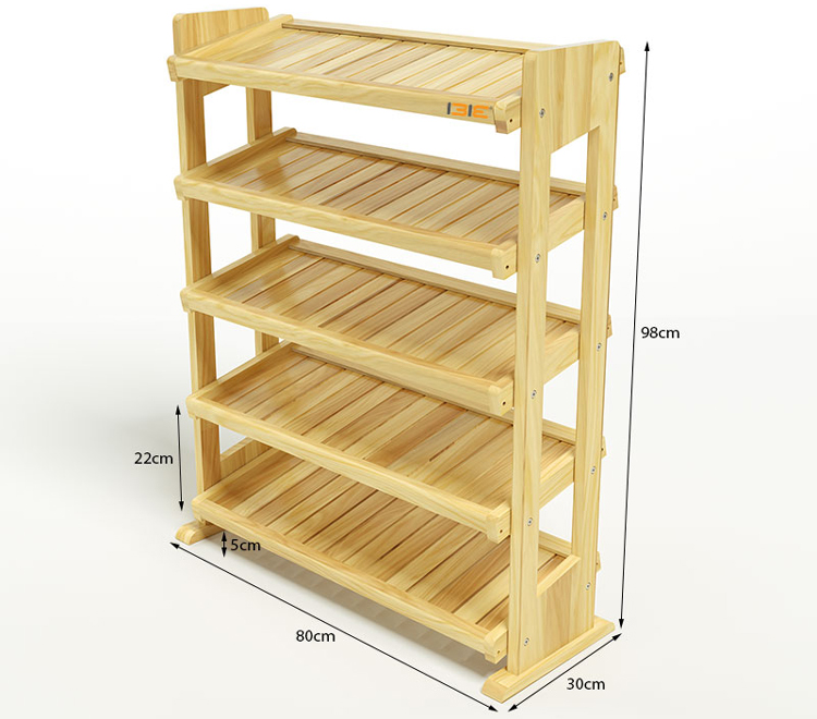 - Kệ Dép 5 Tầng Gỗ Cao Su IBIE IB580 tỷ lệ giữa các cạnh được tính toán cân đối, hợp lý giúp kết cấu luôn vững chắc, an toàn. Khoảng cách từ sàn nhà tới kệ cuối cùng cách 5cm giúp người dùng dễ dàng quét dọn vệ sinh.