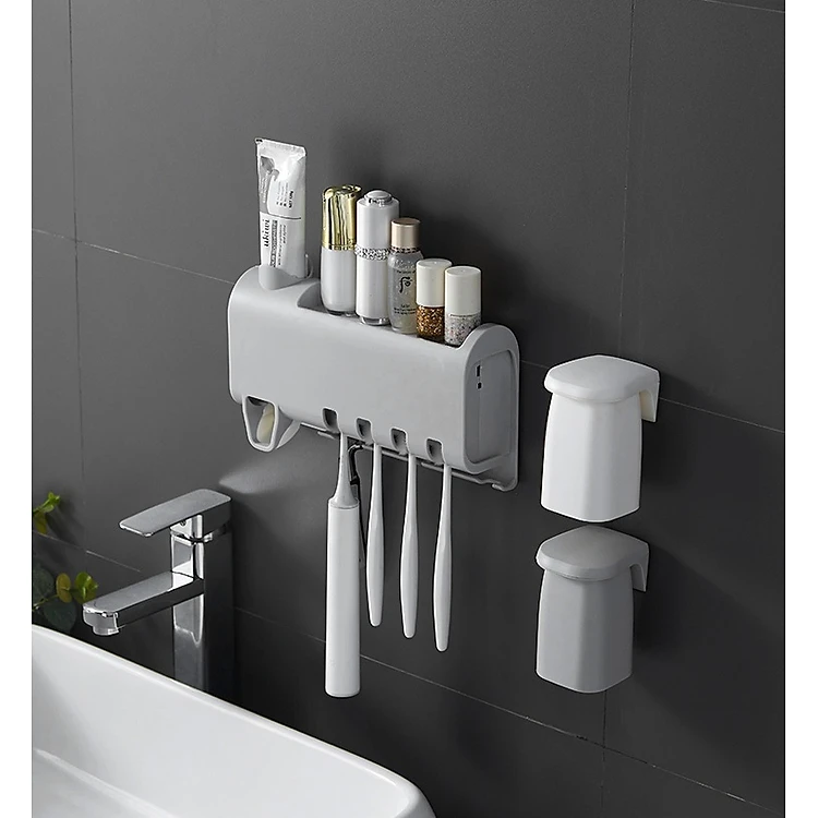 Kệ Đựng Bàn Chải Thông Minh Tự Động Lấy Kem Đánh Răng Kèm 2 Cốc Nam Châm Cao Cấp - Hàng Nhập Khẩu