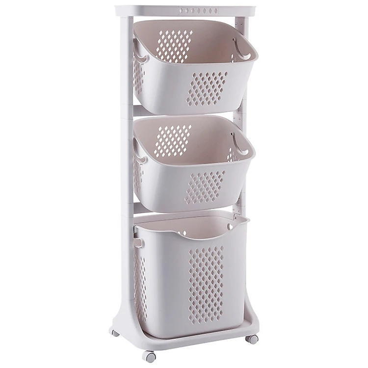 Kệ Đựng Đa Năng 3 Tầng Có Thể Dùng Đựng Quần Áo Dơ, Đồ Giặt, Tháo Rời Dễ Dàng, Giúp Sắp Xếp Nhà Cửa Gọn Gàng, Ngăn Nắp - Có Bánh Xe Di Chuyển Tiện Lợi