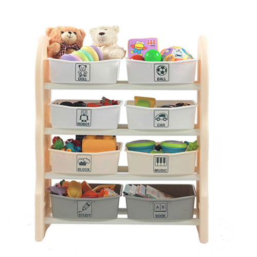 Kệ đựng đồ chơi cho bé giúp bé hình thành thói quen tổ chức, sắp xếp và gọn gàng hơn. Bộ sản phẩm gồm 8 ngăn đựng đồ chơi chia làm 4 tầng cho bé như ảnh dưới (không bao gồm đồ chơi):