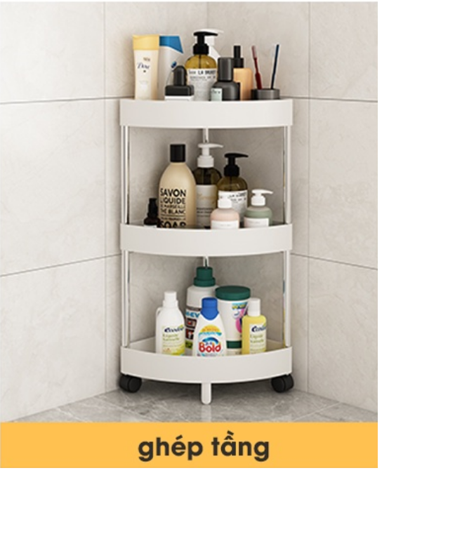 - Kệ đựng đồ 3 tầng có diện tích rộng sắp xếp được nhiều đồ và các loại chai lọ trong phòng tắm, nhà bếp.