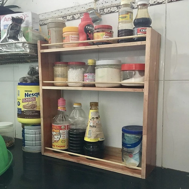 KỆ ĐỰNG GIA VỊ 3 TẦNG BẰNG GỖ TỰ NHIÊN,NHỎ GỌN,XINH XẮN,SANG TRỌNG.