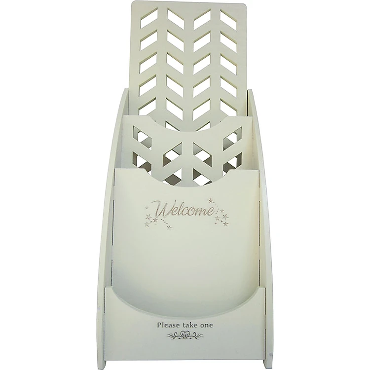 Kệ có 2 ngăn chứa tờ rơi và hộp name card. Kích thước tờ rơi: loại A4 xếp 3.