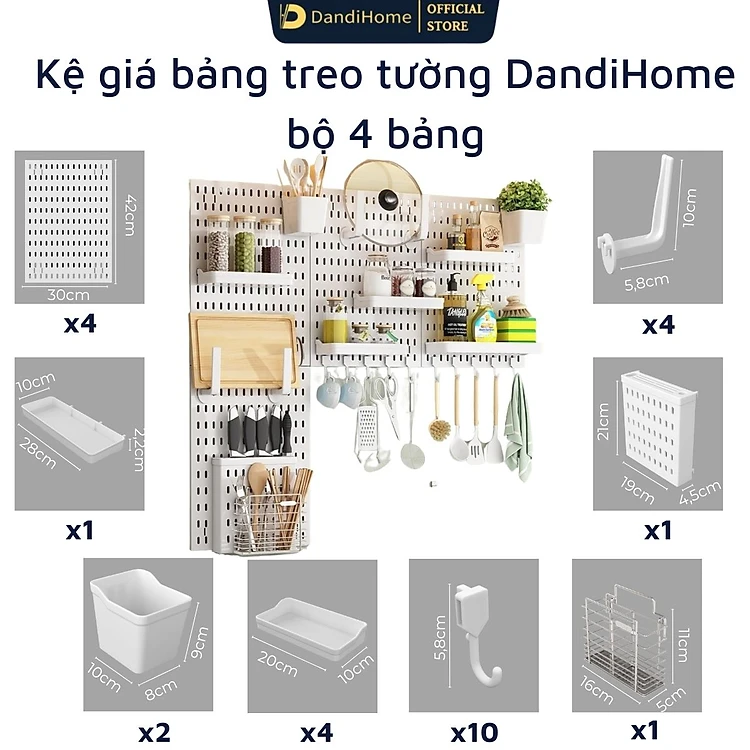Kệ giá bảng treo tường DandiHome trang trí pegboard để đồ decor bàn học, phòng bếp, nhà tắm, đã kèm đầy đủ phụ kiện, có thể dán kính không cần khoan đục