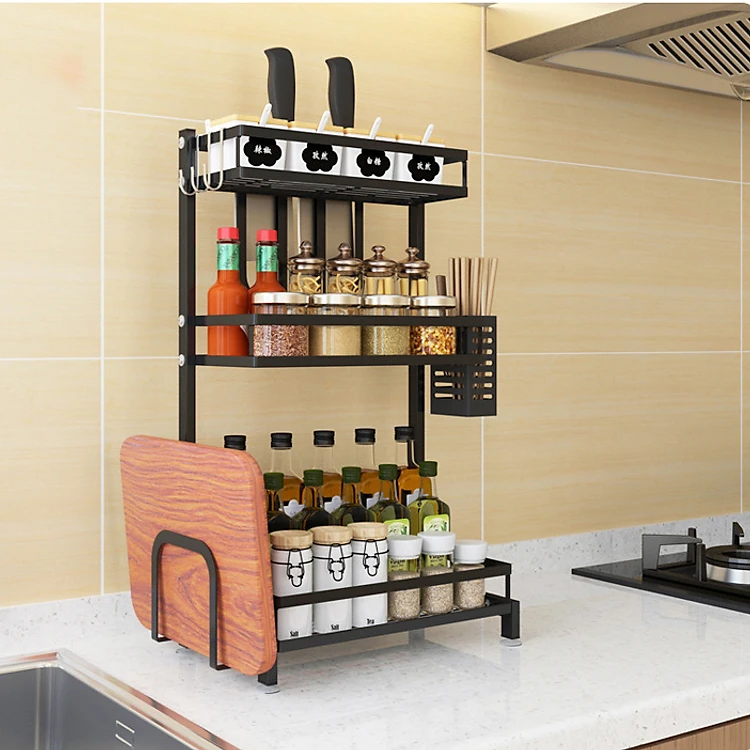 Kệ gia vị chữ E cao cấp VANDO bằng thép carbon chống gỉ, chống xước, kệ đựng chai lọ gia vị đa năng, kệ để đồ nhà bếp gọn gàng, sang trọng