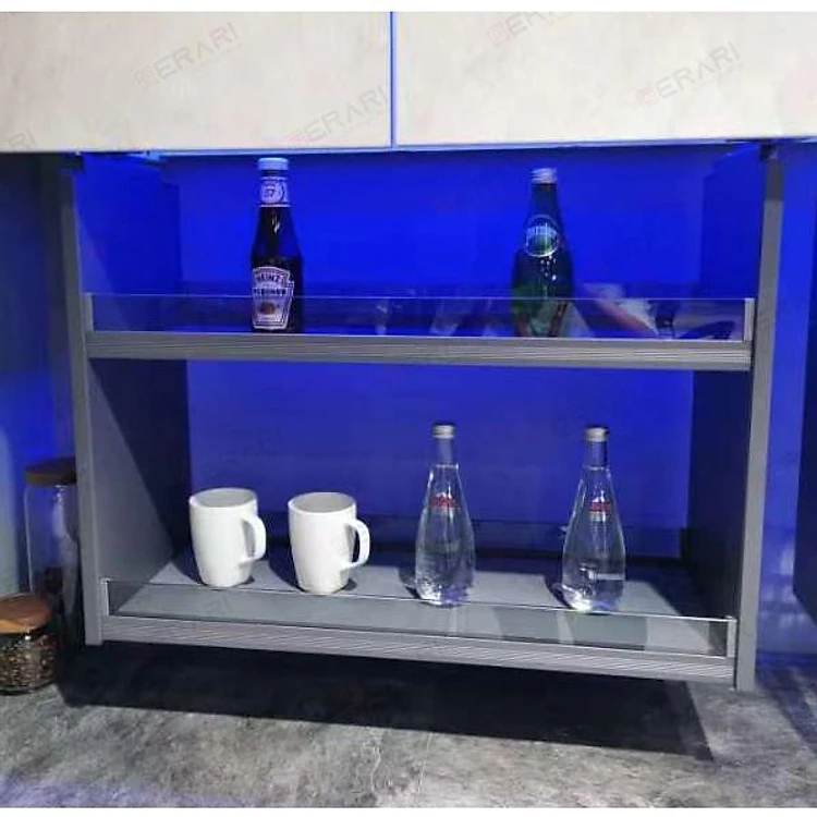 Kệ gia vị nâng hạ điện 2 trục nâng, vách kính cao cấp