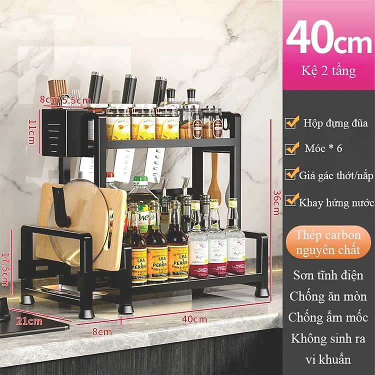 Kệ gia vị nhà bếp đa năng INOX phủ sơn tĩnh điện Đen, kệ bếp cao cấp (2 Tầng) Loại Dày