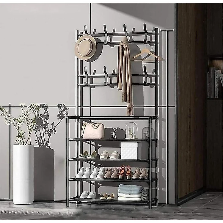 Kệ Giày Dép 4 Tầng Kèm Móc Treo Đồ Thông Minh, Giá Để Giày Dép 4 Tầng Kèm Móc Treo Tiện Lợi Màu Ngẫu Nhiên