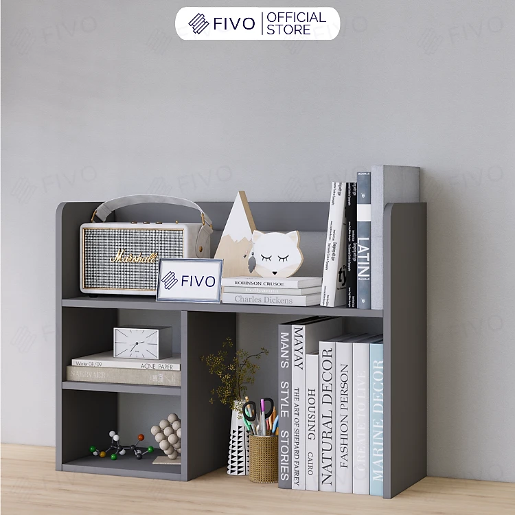 Kệ Gỗ Để Bàn FB21 FIVO Cao Cấp Màu Trắng Và Xám , Dùng Decor Bàn Học, Văn Phòng, Đa Dạng Mẫu Mã Và Màu Sắc