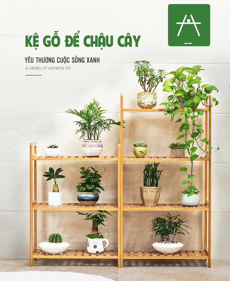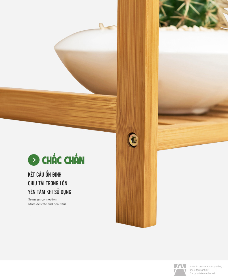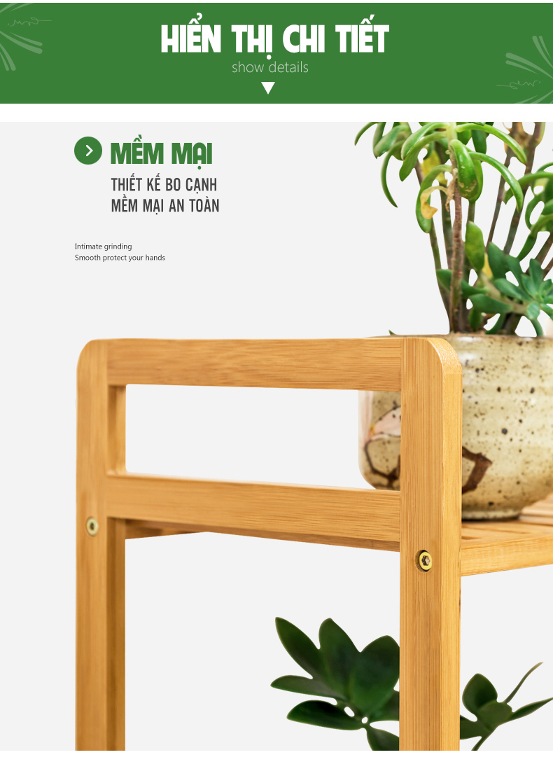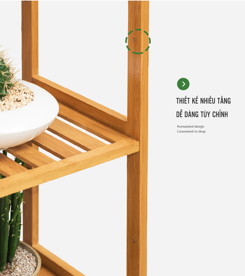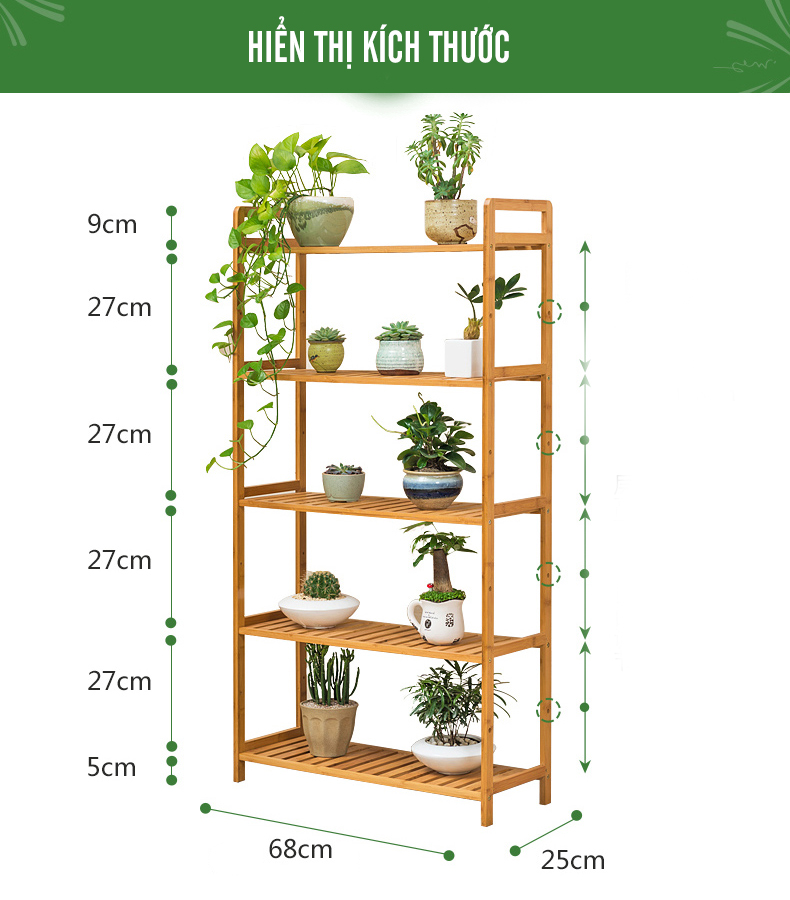 5 Tầng: cao 128cm - Chất liệu: tre hoàn toàn tự nhiên và thân thiện môi trường.