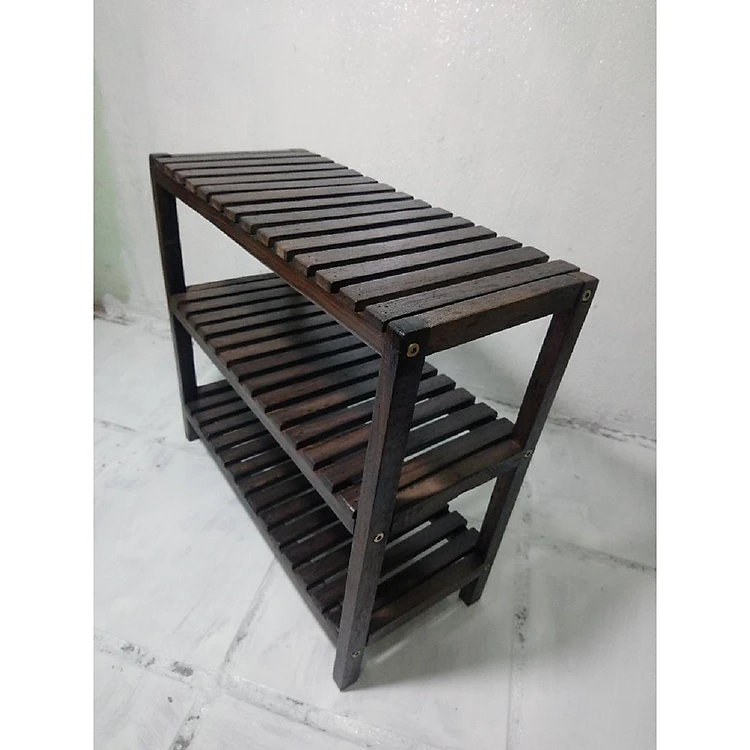 KỆ GỖ ĐỂ GIÀY DÉP, ĐỂ ĐỒ, KIỂU HÀN QUỐC,3 TẦNG , NGANG 60 CM, GỖ MUỒNG ĐEN nguyên thanh (MÀU NÂU)