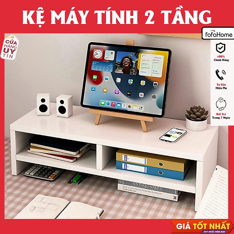 Kệ Gỗ Để Màn Hình Máy Tính 2 Tầng Đa Năng Kết Hợp Để Sách, Bàn Phím Và Chuột Gỗ MDF Chống Thấm Cao Cấp