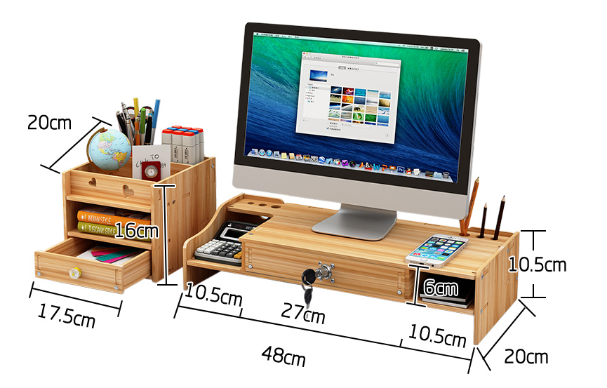 Kệ để màn hình máy tính này giúp bạn ngồi làm việc ở tư thế thoải mái hơn. Các ngăn tủ để đồ được gọn gàng. Có thể lau chùi thoải mái.