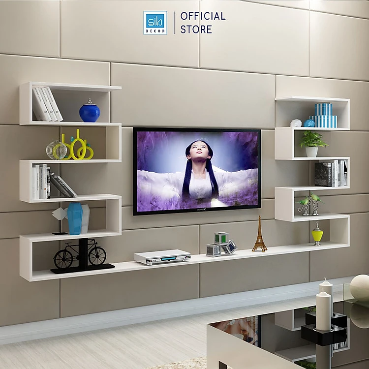 Kệ Gỗ Trang Trí Tivi Treo Tường Nhiều Tầng Đối Xứng Hiện Đại SIB Decor TV128