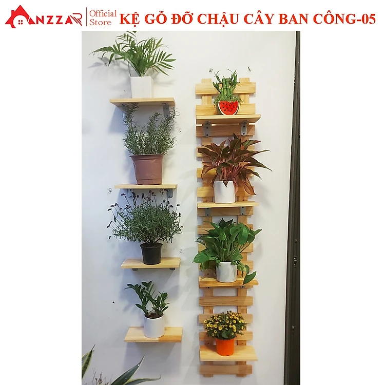 Kệ gỗ treo tường, giá gỗ thông treo tường trang trí ban công, ngoại thất đẹp, treo cây, hoa 160cmx30cm