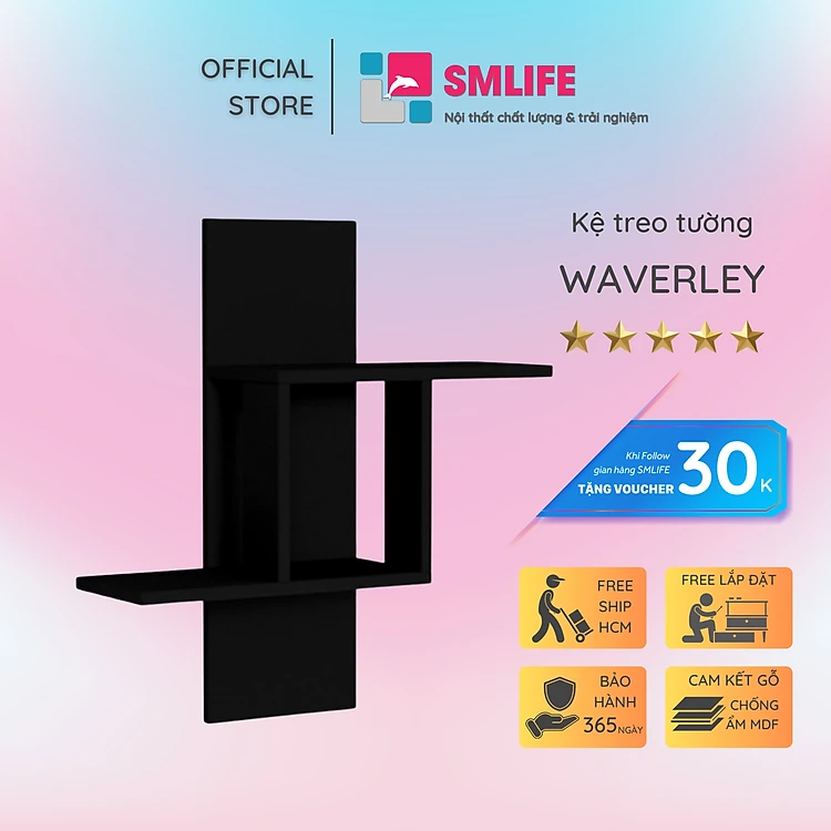 Kệ trang trí gỗ thiết kế mới lạ SMLIFE Waverley