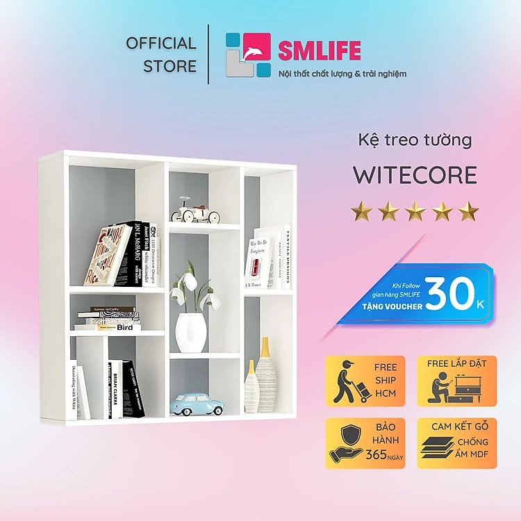 Kệ sách treo tường gỗ công nghiệp hiện đại SMLIFE Witecore