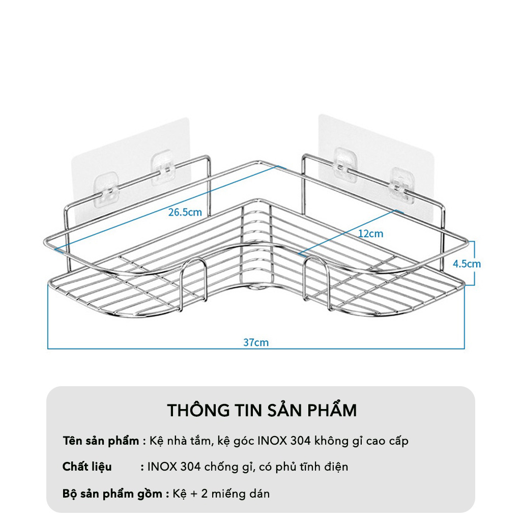 - Tên sản phẩm: Kệ góc dính tường phòng tắm – nhà bếp cao cấp – gắn siêu chắc không khoan tường.