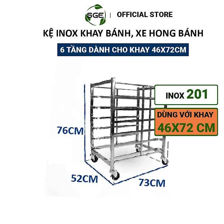 Kệ Inox Khay Bánh/ Xe Hong Bánh SGE 6-10-15-30 tầng khay 46x72cm Chất Liệu Inox, Có Khoá Bánh