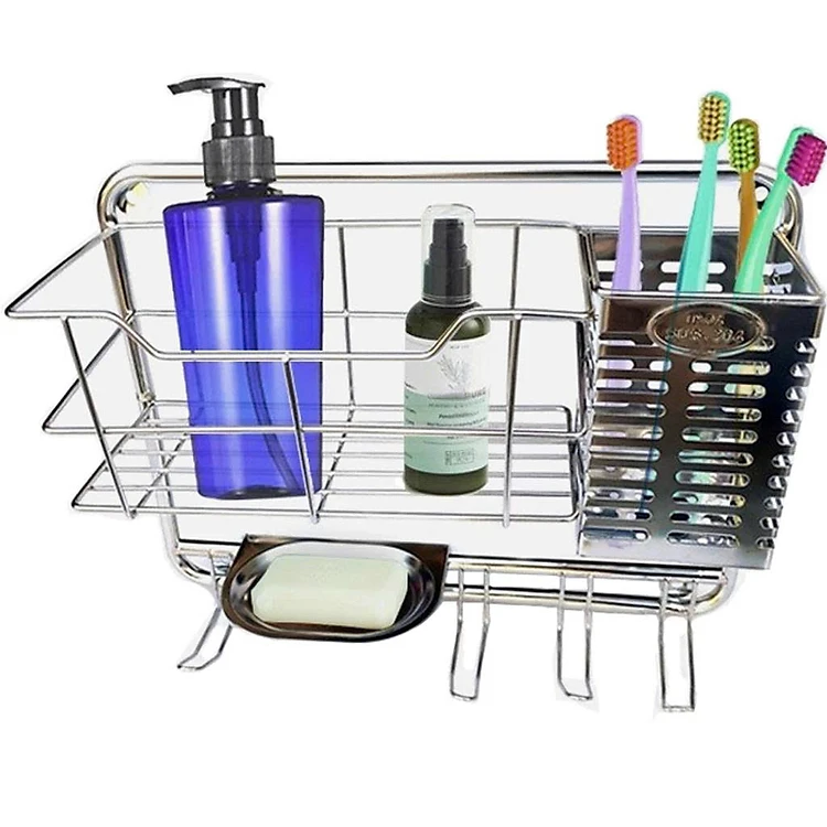 Kệ Inox Nhà Tắm Treo Tường Đa Năng - Khay bàn chải, để xà bông, chai lọ, có móc treo