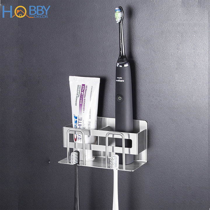 Kệ Inox SUS304 HOBBY HOME DECOR đựng bàn chải, kem đánh răng, ly súc miệng - HOBBY CD3M - Kèm keo dán tường siêu dính