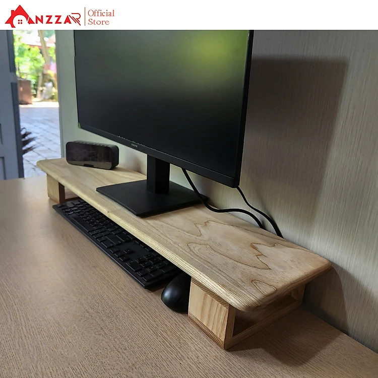 Kệ kê màn hình máy tính cao cấp bằng gỗ tần bì nguyên khối nhập, Kệ gỗ kê màn hình Anzzar-08