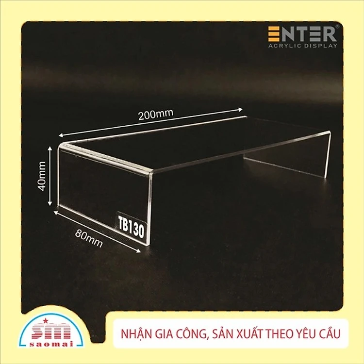 Kệ livestream, Kệ mica chữ U trong suốt để đồ đa năng, Kệ trưng bày mica 3 mặt uốn Enter TB130 200x80x40mm mica dày 3mm (20)