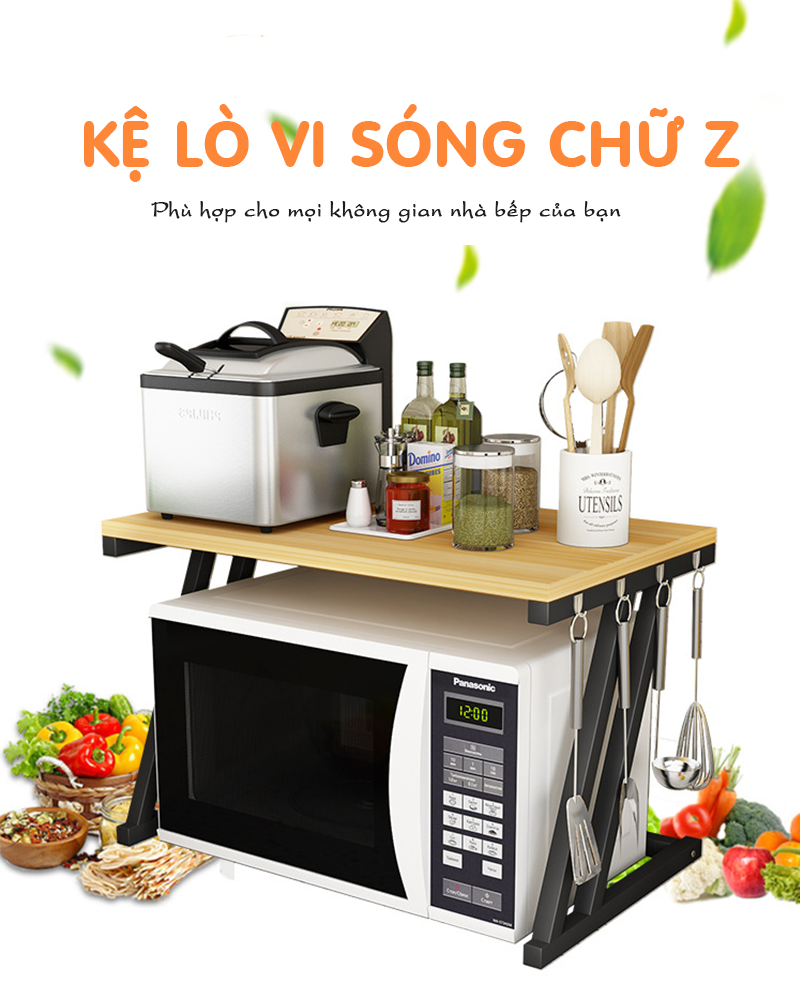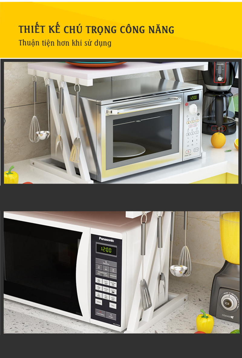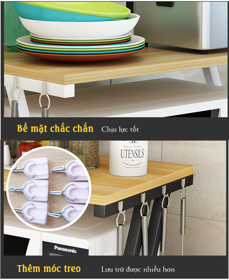 - Công năng: Sắp xếp kệ lò vi sóng kệ gia vị thiết bị nhà bếp gọn gàng