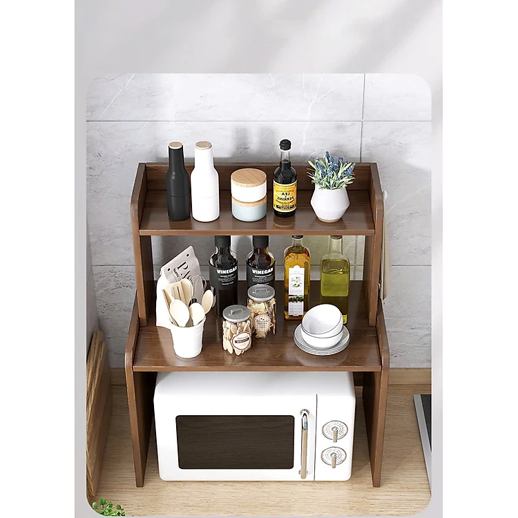 Kệ lò vi sóng 2 tầng kết hợp kệ gia vị chất liệu gỗ chống nước chống bám bẩn - GP186