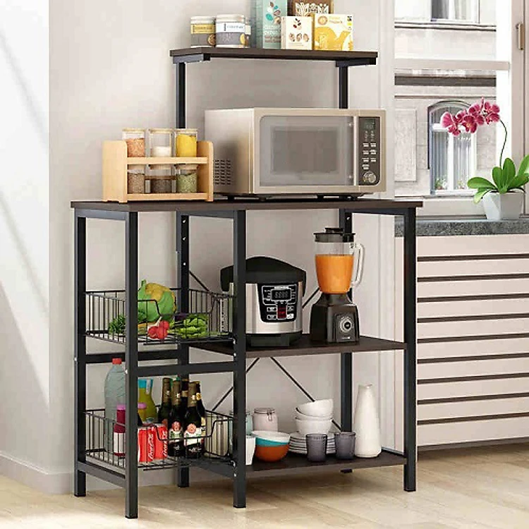 Kệ lò vi sóng đa năng 185N thương hiệu 9House kệ bếp để lò nướng nồi cơm điện kèm giá rổ để rau củ gia vị loại khung sắt dày sơn tĩnh điện chống rỉ mặt gỗ MDF lõi xanh chống ẩm bề mặt phủ melamine chống thấm cao cấp - Hàng chính hãng