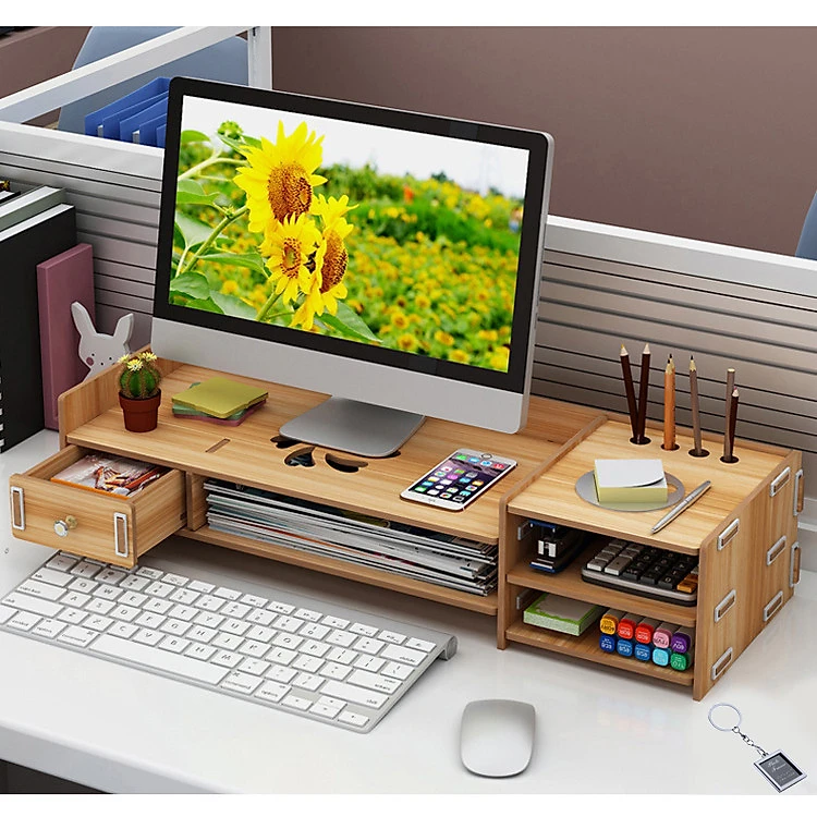 Kệ máy tính kệ sách kệ hồ sơ để bàn kèm cắm viết bằng gỗ 2 mẫu MỚI - Tặng kèm móc khóa khung hình thời trang