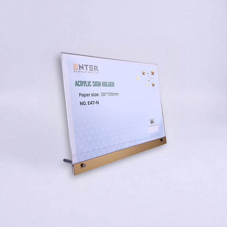 Kệ mica 1 mặt Enter E47-N 300x210mm liên kết bulon A4 ngang, Kệ menu nhà hàng, Standee mica để bàn, Bảng quét mã QR Code