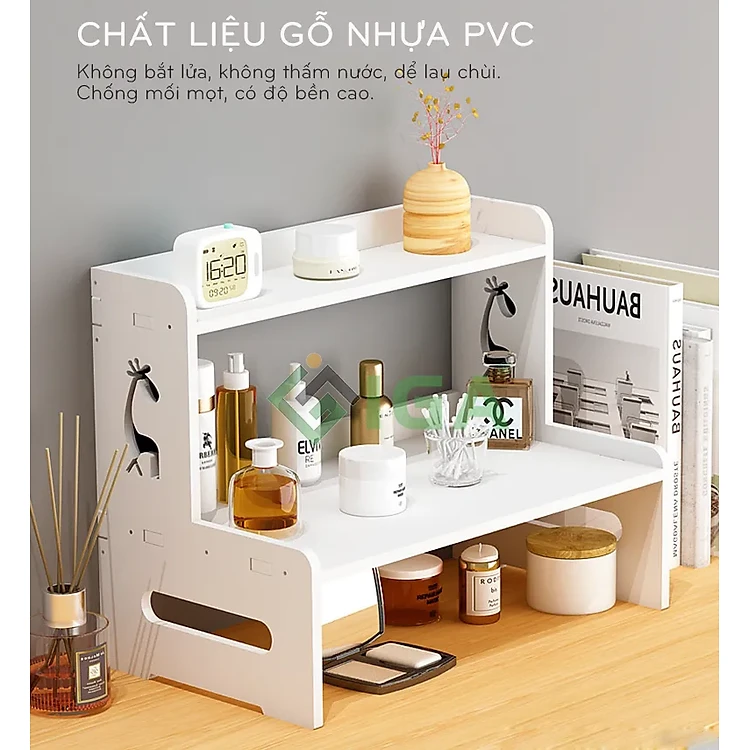 Kệ mỹ phẩm 2 tầng, kệ đa năng mini để bàn gỗ nhựa không thấm nước