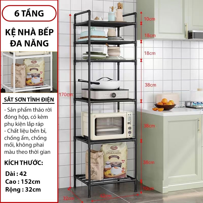 Kệ Nhà Bếp 6 Tầng Kệ Để Đồ Đa Năng Bằng Sắt Sơn Tĩnh Điện Lắp Ráp Đơn Giản Tiện Lợi