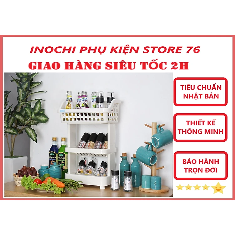 Kệ Nhà Bếp Để Đồ Đa Năng, Kệ Nhựa Cao Cấp 3 Tầng Nachi Đạt Tiêu Chẩu Xuất Nhật ,Châu Âu- Hàng chính hãng inochi ( Tặng khăn lau đa năng pakasa)