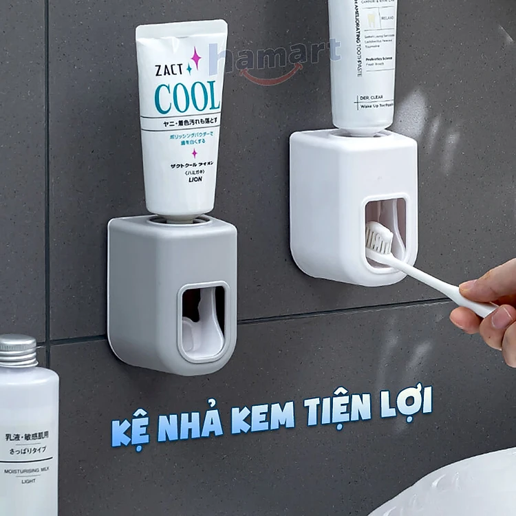 Kệ Nhả Kem Đánh Răng Tự Động Hình Hộp Dán Tường Hamart Kèm Miếng Keo Siêu Dính Tiện Lợi