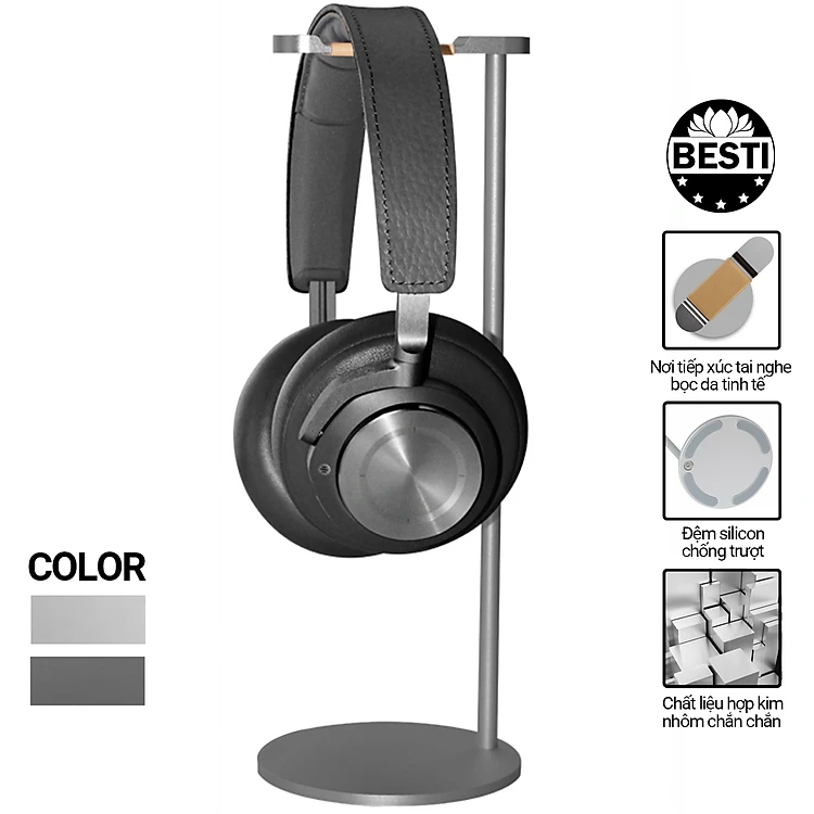 Kệ Nhôm Để Tai Nghe, Giá Đỡ Treo Headphone Besti, Hợp Kim Nhôm Cao Cấp Kiểu Dáng Sang Trọng Để Bàn - Hàng Chính Hãng