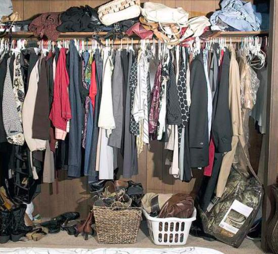 Hình ảnh tủ quần áo không ngăn nắp của bạn, với đồ để mặt đáy tủ đổ và xếp chồng tứ tung lên nhau