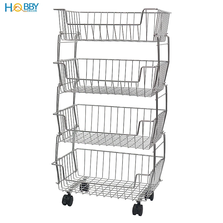 Kệ rổ đựng đồ nhà bếp nhiều tầng Inox 304 Hobby Home Decor NTI không rỉ sét có bánh xe