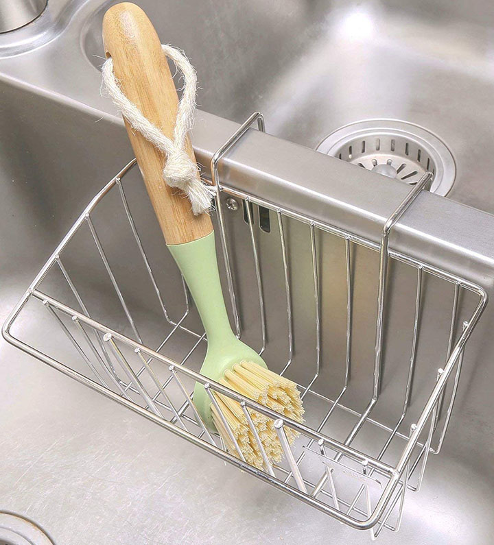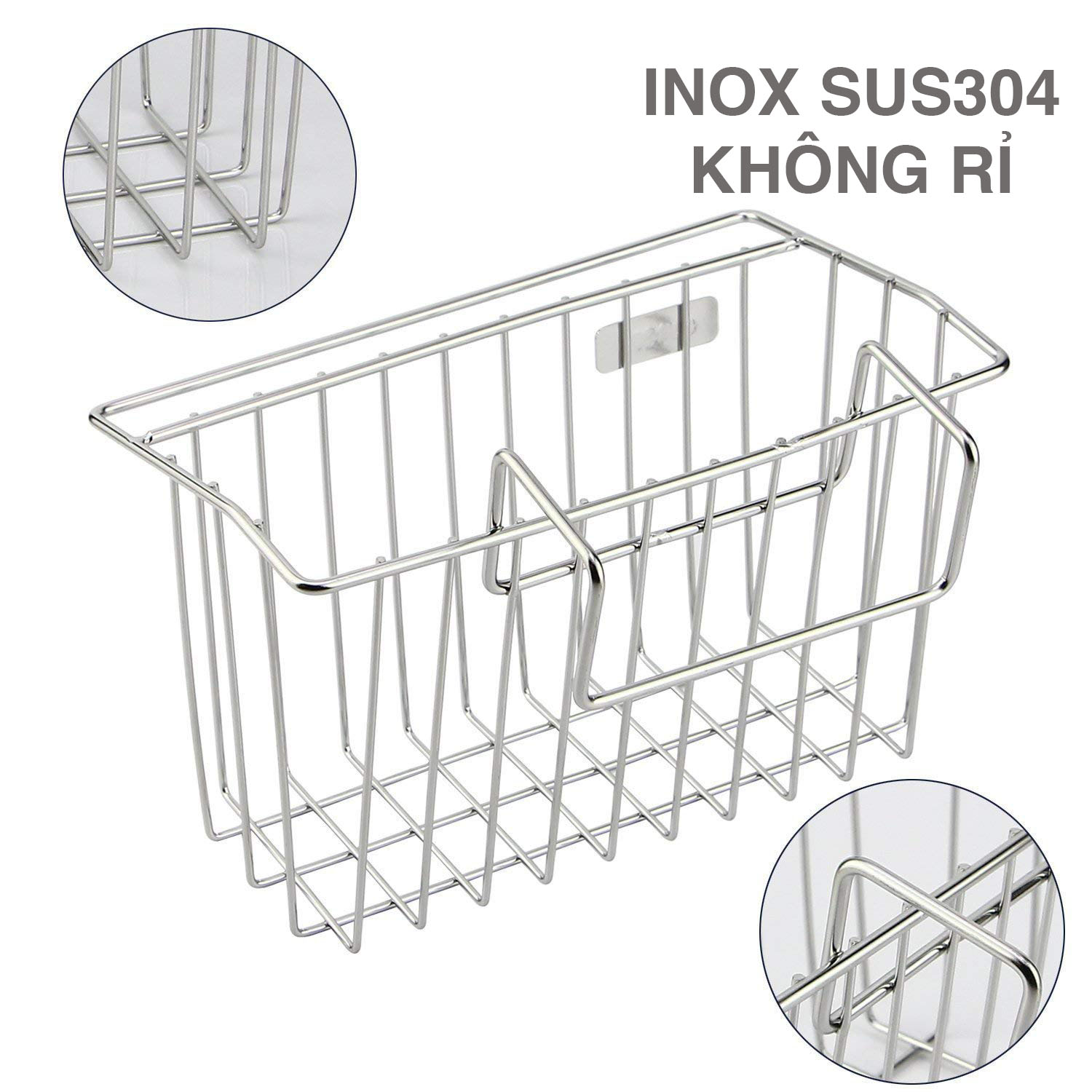 Kệ rổ đựng dụng cụ rửa chén gắn thành bồn chậu rửa chén Inox 304 không rỉ sét - Kệ Inox đựng đồ rửa chén - HOBBY MTB1